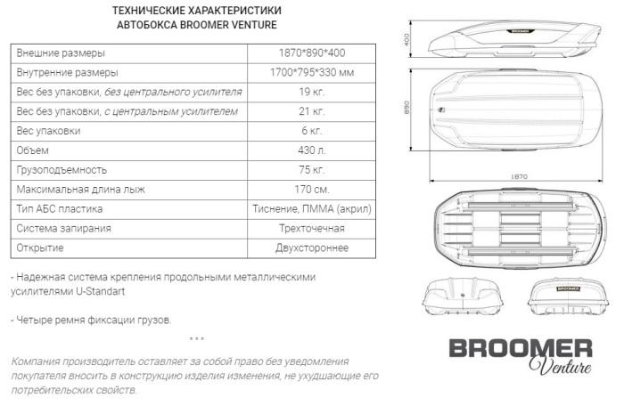Broomer Venture представляет собой аэродинамический бокс современного дизайна с продуманной эргономикой. Он выполнен в современном стиле с острыми и агрессивными очертаниями. Благодаря этому, автобокс Broomer Venture прекрасно подойдет к любому классу автомобиля: от внедорожника, до седана.