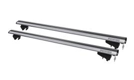 Автобагажник Менабо предназначен для автомобилей с низкими рейлингами лежащими вплотную с крышей, без просвета. Багажник поставляется практически в сборе. Поперечины аэродинамические в форме овала. Каждая из четырех опор багажника запирается пластиковой секреткой, при необходимости можно приобрести комплект металлических личинок "Menabo". Производитель Menabo - Италия.